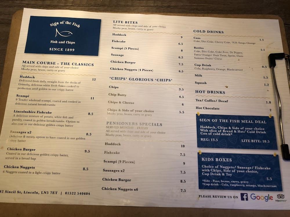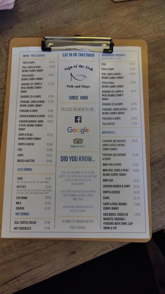 Located at 42 Sincil Street in Lincoln, Sign of the Fish occupies a historic space that has been serving delectable fish and chips for over a century. The charm of this restaurant reflects Lincoln's rich heritage, making it a favorite among residents and visitors. On any given day, you’ll find the friendly staff bustling about, dedicated to providing top-notch service whether you choose to dine in or grab a takeaway. The restaurant greets diners with a casual atmosphere where enjoying classic British fare feels like a warm embrace.